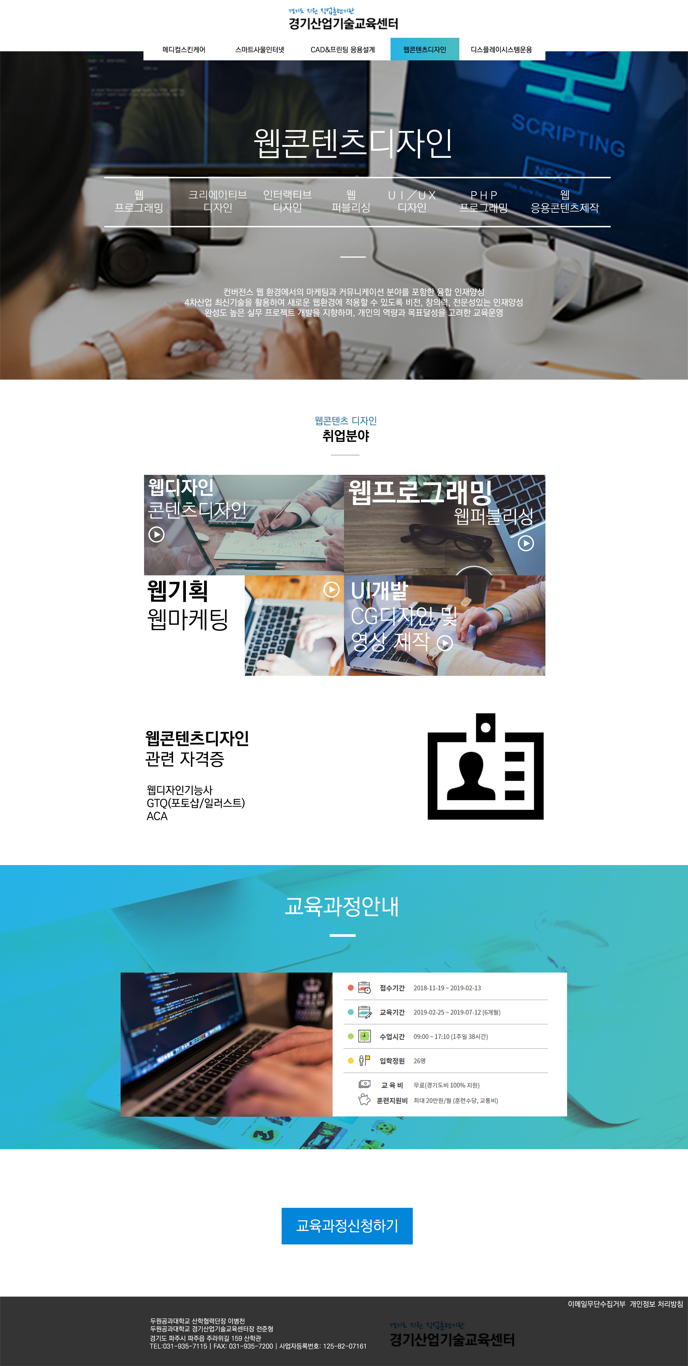 경기산업기술교육센터 과정 중 디자인한 고정형 웹사이트로