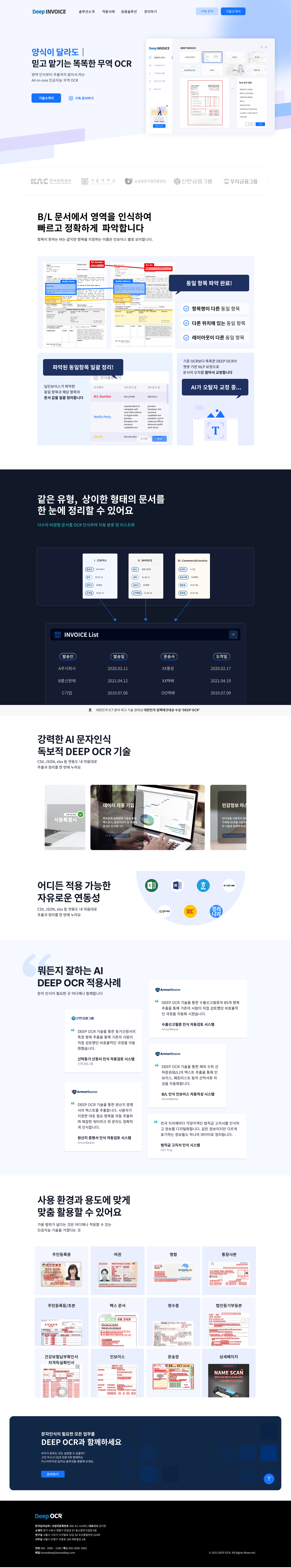 한국딥러닝의 물류 OCR 솔루션인 DEEP INVOICE의