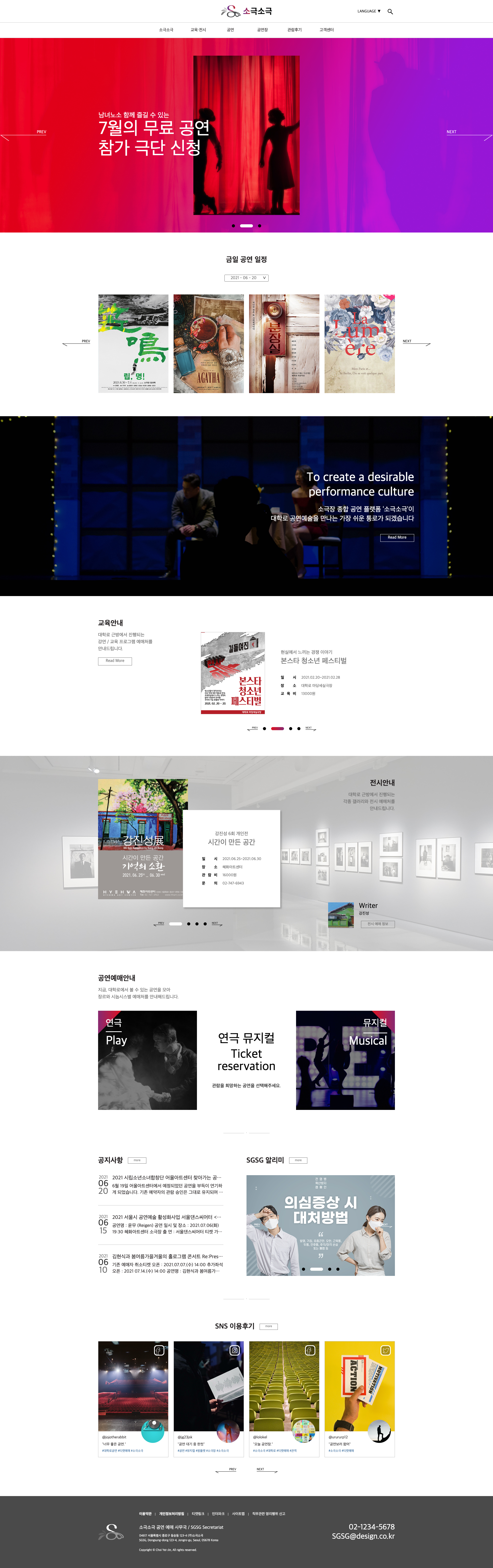 새로운 컨셉의 소극장 브랜드 웹사이트를 기획, 디자인, 웹개발 작업까지